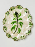 Embrace the vibrant beauty of the tropics with the Atlantic Banana Flower Tray. This oval tray boasts a delightfully ruffled edge, handcrafted from shimmering capiz shells that give it an iridescent, luminous finish. The centrepiece is an original painting of a lush banana flower bloom, surrounding the flower, a dotted pattern in green adorns the ruffled edge, evoking playful movement. Perfect for serving up a tropical cocktail and appetiser or simply showcasing as an accent piece, this artisan-made tray adds a burst of island-inspired vibes wherever you place it.