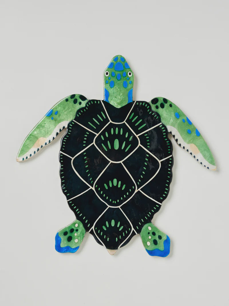 The epitome of luxurious tranquillity with the Beach Club Turtle Wall Tile. Masterfully handcrafted from iridescent capiz shells, this exquisite tile captures the enchanting form of a sea turtle. Awash in soothing shades of green, this piece exudes a calming, tropical ambiance that will transport you to a secluded paradise with every glance. A generous size, this one-of-a-kind artwork seamlessly blends luxury and affordability.