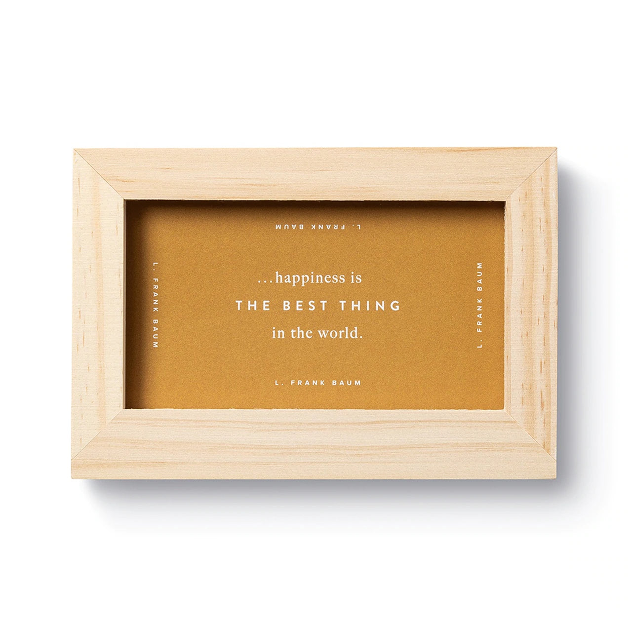 Place one of the 52 unique quotes in the window of the box and change it out as often as you like, or choose a new one each week and revel in a year of happy living.