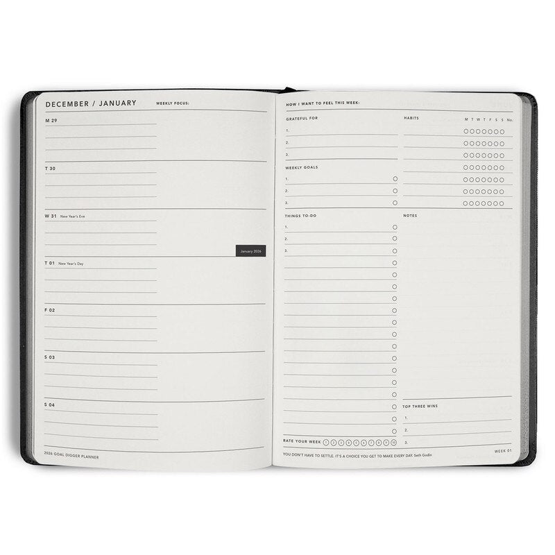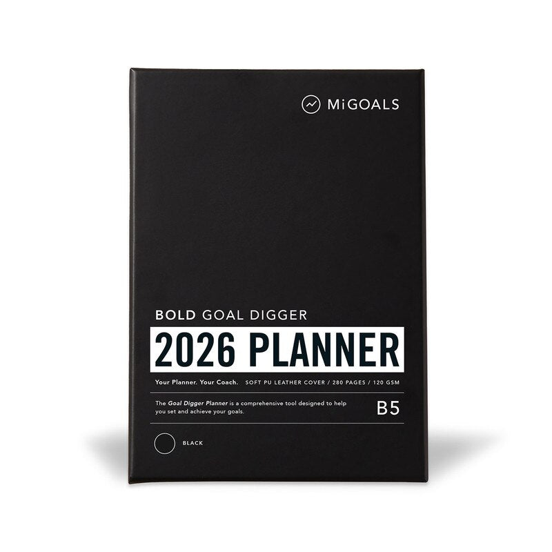 MiGoals - 2026 Bold Goal Digger Diary - Weekly Action - B5 - Soft Cover - Boxed - Bold - Black