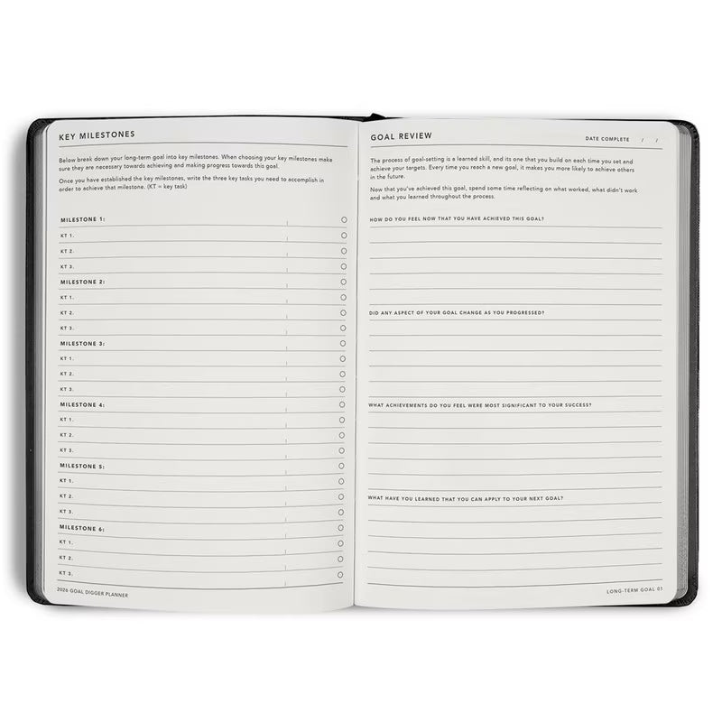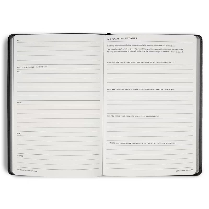Designed to help you break down big dreams into manageable steps, this diary is your ultimate support system for turning intention into action. Whether you're mapping out long-term ambitions or tracking daily habits, the Goal Digger Diary keeps you organized, inspired, and accountable.