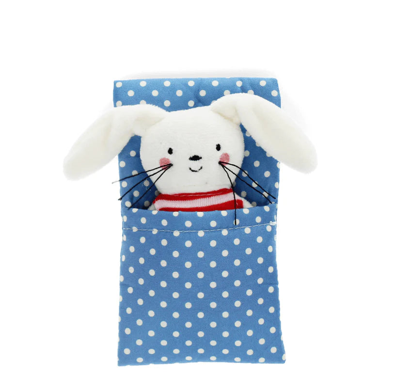 Introduce a touch of magic to bedtime with the Rex London Mini Bunny in a Little Box! This adorable soft bunny comes snugly packed in a sturdy, vintage-style matchbox, complete with a cozy blanket for tucking in each night. Ideal for creating a bedtime ritual, this sweet little bunny helps children understand the importance of winding down, offering them a soft, comforting friend to cherish. Compact at 11.5 cm tall, the bunny is the perfect size for little hands and easy to take along on adventures or sleepovers.