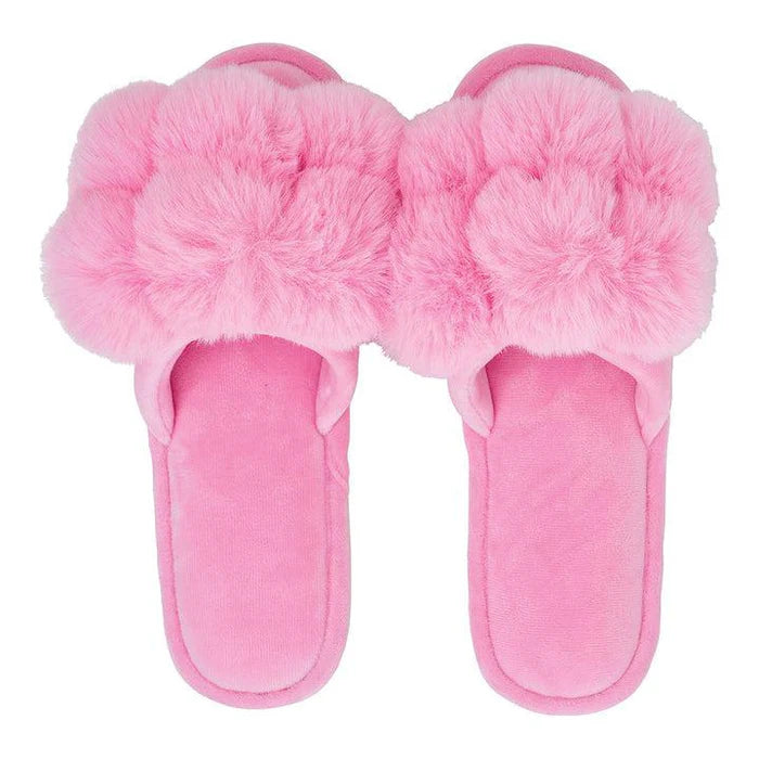 Treat your feet to a pair of our Cosy Luxe Slippers. Super soft Pom Pom’s, open toe and hard sole, these slippers are cute and practical for around the home and through all seasons.
